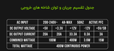 - راندمان مصرف انرژی (Efficiency) حداکثر %88 فراتر از گواهینامه 80Plus Bronze