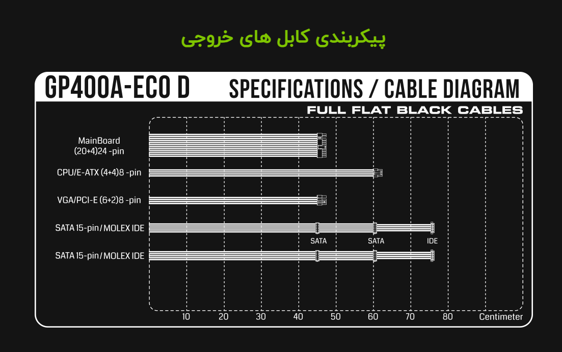 - مجـهز به کابل های تماماً تـخت (Flat) مشـکی رنگ جهـت اسـمبل زیباتر و گردش بهـتر هـوا