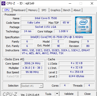 intel cpu i5 7500 kaby Like